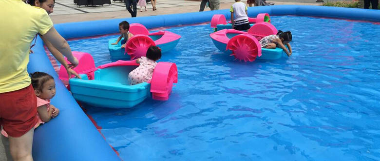 Mini Paddle Boats can only be used in shallow water areas or inflatable pools, and the water depth must be at least 20 centimeters. A common form of amusement in mobile water parks such as parks, swimming pools, and scenic areas during summer is favored by children and parents for its safety and fun.